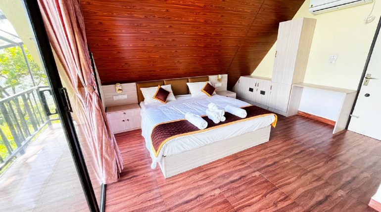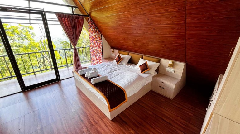 Hidden among whispering pines, the Aspen A-Frame Room offers an enchanting blend of nature and Nordic-inspired design. Its iconic triangular architecture, crafted in cedar and glass, creates a cozy cocoon that opens up to panoramic valley views.