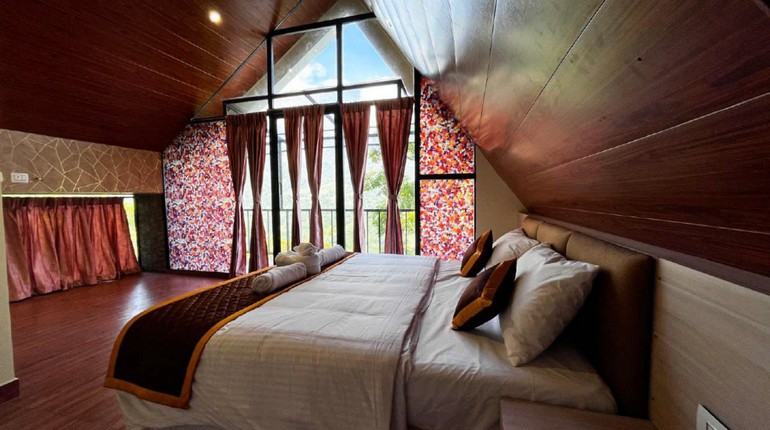 Tucked away in the tranquil edge of the property, the Crescent Corner Room offers serenity in its purest form. Its signature curved bay window wraps around the hillside, revealing an uninterrupted panorama of misty valleys and rolling clouds.